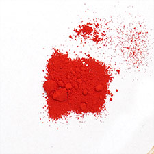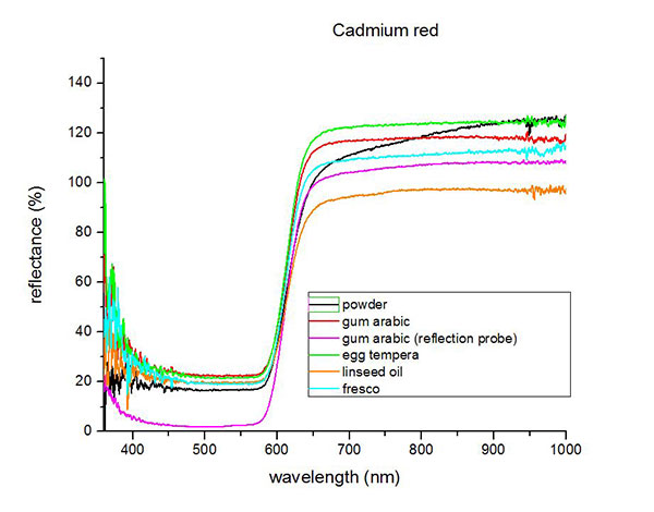 Cadmium red is cadmium sulfoselenide Cd(S,Se). Cadmium red contains between 15 to 30% (and more) selenium. The variations are solid solutions of selenium sulfide in cadmium sulfide.It is stable as a pure pigment. The occurrences of bleaching or darkening in the beginnings of its use were due to impurities. The pigment is lightfast and there are no reports to the contrary. It is not compatible with lead and copper-containing pigments as they form dark sulfides of lead or copper.